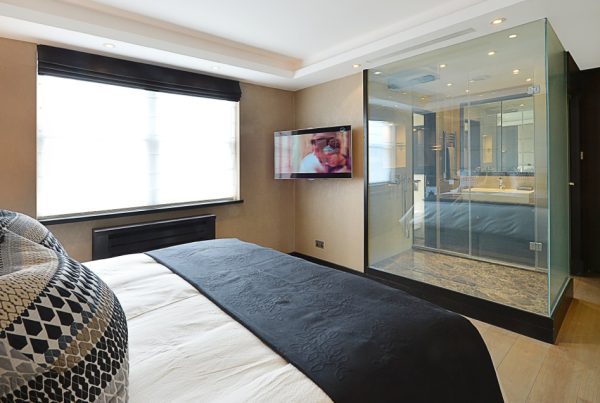 Using Smart Glass is a great way to maximize the amount of natural light entering your home, which is why we see it frequently used as a partition wall or door for en-suite bathrooms. Typically, these spaces are small and devoid of natural light, due to homeowners being discouraged by the costly job of integrating additional windows. By swapping a stud wall or door for a Switchable Glass system, you can make the most of the existing light source in the bedroom, stretching it into the en-suite space without compromising on privacy or breaking the bank.