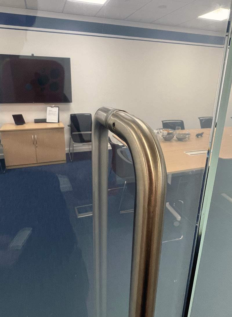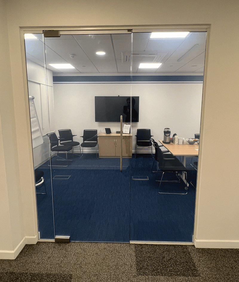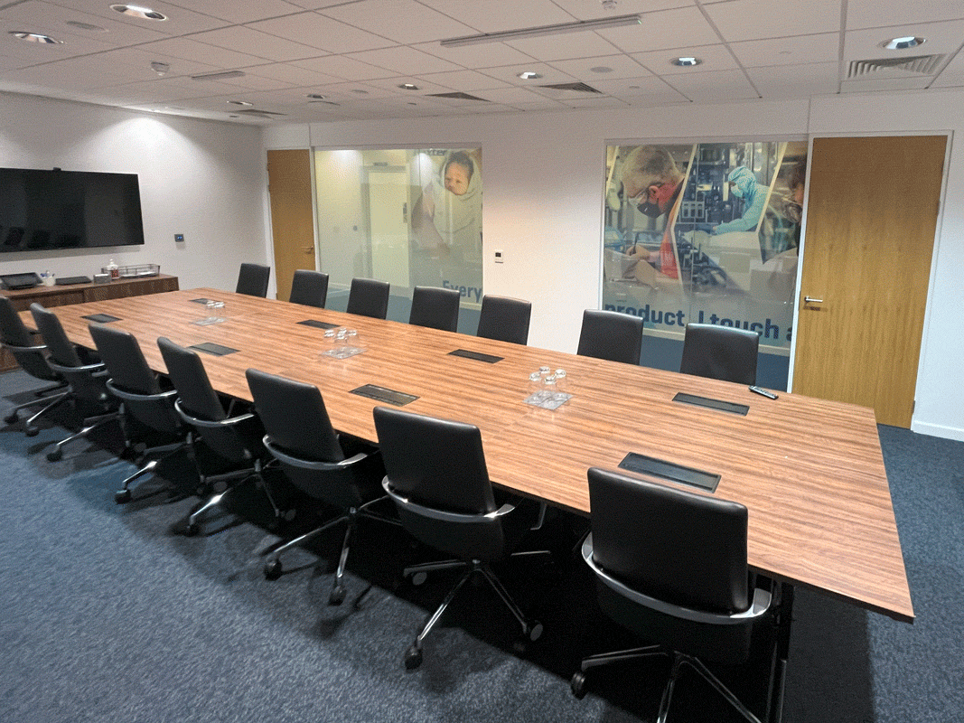 Six (2.3m high) columns of self-adhesive switchable film were fitted to all the glass panels in each of the 9 offices, the boardroom and the training room at the Thetford (UK) site.
