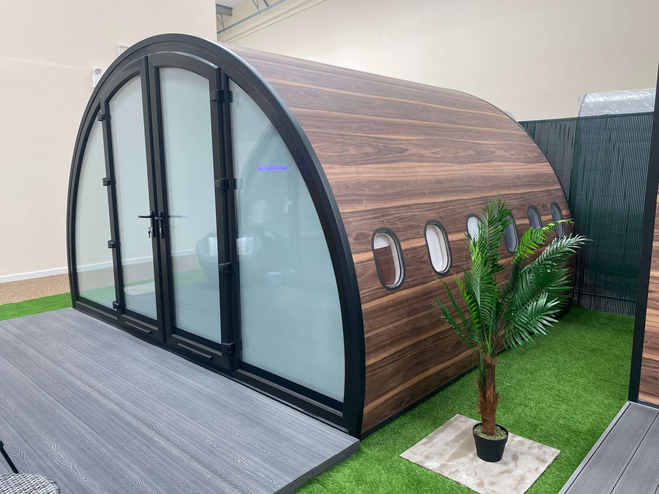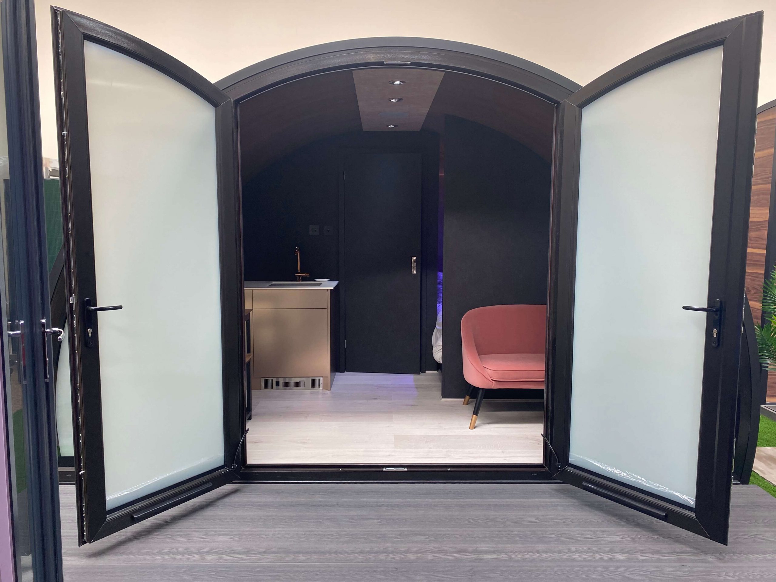 Thrilled with the outcome of the install SkyPods will now be offering our switchable technologies as part of a premium upgrade package for all of their products including the SkyPods; used here for glamping, the SkyQuads; a more compact space for garden bars and alfresco dining and SkyCubes; for use in both larger offices and garden spaces coming kitted out with integrated office furniture.